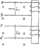 如图所示,平行导轨a、b和平行导轨c、d在同一平面内,两导轨分别和两线圈相连接,匀强磁场的方向垂直两导轨所在的平面,金属棒L1和L2可在两导轨上沿导轨自由滑动,棒L2原来静止,用外力使L1向左运动,下列说法中正确的是![]()