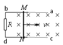 如图所示,两根相距为L的平行直导轨ab、cd,b、d间连有一固定电阻R,导轨电阻可忽略不计.MN为放在ab、cd上的一导体杆,与ab垂直,其电阻也为R.整个装置处于匀强磁场中,磁感应强度的大小为B,方向零直于导轨所在平面(指向图中纸面内).现对杆MN施力使它沿导轨方向以速度V做匀速运动.令U表示MN两端电压的大小,则![]()
