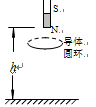 如图所示,在一固定水平放置的闭合导体圆环上方,有一条形磁铁,从离地面高h处,由静止开始下落,最后落在水平地面上。磁铁下落过程中始终保持竖直方向,并从圆环中心穿过圆环,而不与圆环接触。若不计空气阻力,重力加速度为g,下列说法中正确的是( )![]()