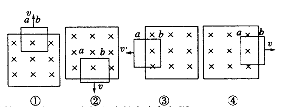粗细均匀的电阻丝围成的正方形线框原先整个置于有界匀强磁场内,磁场方向垂直于线框平面,其边界与正方形线框的边平行,现使线框沿四个不同方向以相同速率V匀速平移出磁场,如图所示,线框移出磁场的整个过程( )![]()