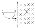 如图所示,一导线弯成半径为a的半圆形闭合线圈。虚线MN右侧有磁感应强度为B的匀强磁场。方向垂直于线圈所在的平面。线圈以速度v向右匀速进入磁场,直径CD始络与MN垂直。从D点到达边界开始到C点进入磁场为止,下列结论正确的是:( )![]()
