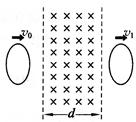 如图所示,宽度为d的有界匀强磁场竖直向下穿过光滑的水平桌面,一质量为m的椭圆形导体框平放在桌面上,椭圆的长轴平行磁场边界,短轴小于d。现给导体框一个初速度v0(v0垂直磁场边界),已知导体框全部在磁场中的速度为v,导体框全部出磁场后的速度为v1;导体框进入磁场过程中产生的焦耳热为Q1,导体框离开磁场过程中产生的焦耳热为Q2。下列说法正确的是![]()