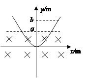 光滑曲面轨道与竖直平面的交线是抛物线,如图所示,抛物线的方程是y=ax2,下半部处在一个水平方向的匀强磁场中,磁场的上边界是y=a的直线(如图中的虚线所示)。一个小金属块从抛物线上y=b(b>a)处以速度v沿抛物线下滑。假设抛物线足够长,金属块沿抛物线下滑后产生的焦耳热总量是 ( )![]()