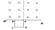 如图,光滑绝缘水平面上,有一矩形线圈冲人一匀强磁场,线圈全部进入磁场区域时,其动能恰好等于它在磁场外面时的一半,设磁场宽度大于线圈宽度,那么( )![]()