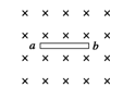 一根导体棒ab放在水平方向的匀强磁场中,导体棒自由落下时,始终保持水平方向且跟磁场方向垂直,如图所示,比较导体棒ab两端的电势的高低,有( )![]()