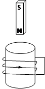 如图,闭合线圈上方有一竖直放置的条形磁铁,磁铁的N 极朝下。当磁铁向下运动时(但未插入线圈内部)( ) ![]()