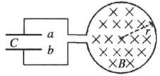 如图所示,在电容器C的两端接有一个圆环形导体回路,在圆环回路所围的面积之内存在着垂直纸面向里的匀强磁场B,已知圆环的半径r=5cm,电容器的电容C=20