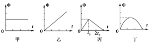 穿过闭合回路的磁通量Φ随时间t变化的图象分别如图甲、乙、丙、丁所示,下列关于回路中产生的感应电动势的论述,正确的是: