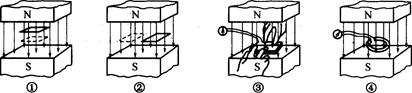 如图所示的匀强磁场中有一个闭合线圈.保持线圈平面始终与磁感线垂直,当线圈在磁场中上下运动时(图①),当线圈在磁场中左右运动时(图②),先把弹簧线圈撑开(图③),后放手让线圈收缩(图④).其中能产生感应电流的图是( )![]()