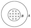 如图所示,A、B两闭合线圈为同样导线绕成,A有10匝,B有20匝,两圆线圈半径之比为2∶1.均匀磁场只分布在B线圈内.当磁场随时间均匀减弱时 ( ).![]()