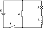 电源E、开关S、定值电阻R、小灯泡A和带铁芯的线圈L(其电阻可忽略),连成如图所示的电路,闭合开关S,电路稳定时,小灯泡A发光,则断开S瞬间,以下说法正确的是 ( )![]()