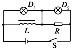 如图所示的电路中,D1和D2是两个相同的小灯泡,L是一个自感系数相当大的线圈,其阻值与R相同.在开关S接通和断开时,灯泡D1和D2亮暗的顺序是 ( ) ![]()