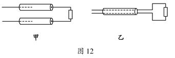 某输电线路横穿公路时,要在地下埋线通过,为了保护线路不至于被压坏,预先铺设结实的过路钢管,再让输电线从钢管中穿过.电线穿管的方案有两种:甲方案是铺设两根钢管,两条输电线分别从两根钢管中穿过;乙方案是只铺设一根钢管,两条输电线都从这一根钢管中穿过,如图12所示.如果输电导线输送的电流很大,那么,以下说法正确的是 ( )![]()