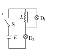 如图所示,E为电池,L是电阻可忽略不计、自感系数足够大的线圈,D1、D2是两个规格相同且额定电压足够大的灯泡,S是控制电路的开关。这个电路,下列说法中正确的是( )![]()