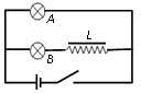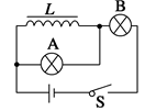 如上图B所示的电路,D1和D2是两个相同的小灯泡,L是一个自感系数相当大的线圈。其电阻很小,近似为零。在电键S接通和断开时,对灯泡D1和D2的描述正确的是( )![]()