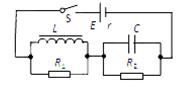 如图所示,E、r为电源的电动势、内阻,R1(与线圈并联)、R2(与电容并联)为定值电阻,线圈L的直流电阻不计,C为电容器。下列说法中正确的是( )![]()