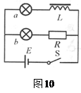 在研究自感现象的实验中,用两个完全相同的灯泡a、b分别与自感系数很大的自感线圈L和定值电阻R组成如图10所示的电路(自感线圈的直流电阻与定值电阻R的阻值相等),闭合开关S达到稳定后两灯均可以正常发光。关于这个实验下面的说法中正确的是![]()