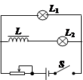 如图所示的电路中,L1、L2是相同的两灯,L的电阻不计,则![]()