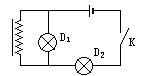 | A.K闭合瞬间,两灯同时亮,以后D1熄灭,D2变亮 |