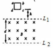 如图所示,相距为d的两条水平虚线L1、L2之间是方向水平向里的匀强磁场,磁感应强度为B,正方形线圈abcd边长为l(l<d),质量为m,电阻为R,将线圈在磁场上方高h处静止释放,cd边刚进入磁场时速度为v0,cd边刚离开磁场时速度也为v0,则下列说法正确的是![]()
