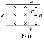 如图11所示,水平放置的光滑平行金属导轨上有一质量为m的金属棒ab.导轨的一端连接电阻R,其他电阻均不计,磁感应强度为B的匀强磁场垂直于导轨平面向下,ab在一水平恒力F作用下由静止开始向右运动的过程中![]()