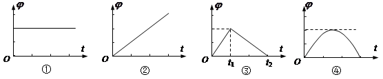 随时间 t 变化的图象分别如图①~④所示,下列关于回路中产生的感应电动势的论述正确的是![]()
