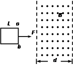 边长为L的正方形金属框在水平恒力F作用下运动,穿过方向如图所示的有界匀强磁场区域。磁场区域的宽度为d(d>L)。已知ab边进入磁场时,线框的加速度恰好为零。则线框进入磁场的过程和从磁场另一侧穿出的过程相比较,有
