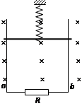两根足够长的光滑导轨竖直放置,间距为L,底端接阻值为R的电阻。将质量为m的金属棒悬挂在一个固定的轻弹簧下端,金属棒和导轨接触良好,导轨所在平面与磁感应强度为B的匀强磁场垂直,如图所示,除电阻R外其余电阻不计。现将金属棒从弹簧原长位置由静止释放,则![]()