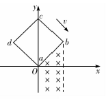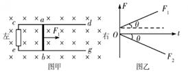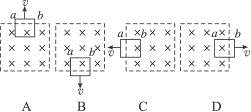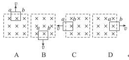 如图所示,先后以速度v1和v2匀速把一矩形线圈拉出有界匀强磁场区域,v1=2v2。在先后两种情况下:![]()