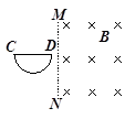 如图所示,一导线弯成半径为a的半圆形闭合回路,虚线MN右侧有磁感应强度为B的匀强磁场,方向垂直于回路所在平面。回路以速度v向右匀速进入磁场,直径CD始终与MN垂直。从D点到达边界开始到C点进入磁场为止,下列结论正确的是:![]()