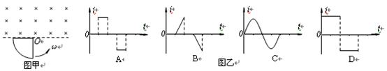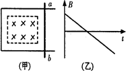 水平放置的U形光滑金属导轨上放置一金属棒ab,甲图中的矩形区域内存在一有界匀强磁场,规定垂直纸面向里为磁场正方向。现使该磁场按乙图所示的规律变化,则下列判断正确的是 ![]()