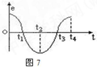矩形线圈在匀强磁场中匀速转动产生的电动势e - t图像如图7所示,则![]()