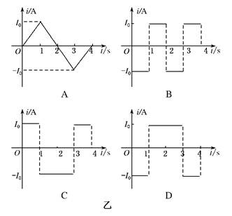 如图所示,一长直导线 AB中通以如图乙所示的交流电,在导线附近的正下方放置一闭合线圈,线圈平面与导线在同一平面内如图甲所示,则下列说法中正确的是 ![]()