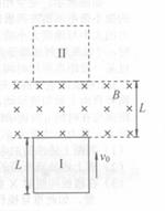 经历一段时间后,当导线框的下边恰好与磁场的上边界重合时(图中位置II),导线框的速度刚好为零。此后,导线框下落,经过一段时间回到初始位置I。则![]()
