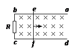 如图所示,在一匀强磁场中有一U形导线框abcd,线框处于水平面内,磁场与线框平面垂直,R为一电阻,ef为垂直于ab的一根导体杆,它可以在ab、cd上无摩擦地滑动.杆ef及线框中导线的电阻都可不计.开始时,给ef一个向右的初速度,则 ![]()