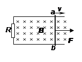 如图所示,间距为L的光滑平行金属导轨水平放置,导轨上有一电阻为r的金属棒ab与导轨接触良好。导轨一端连接电阻R,其它电阻不计,磁感应强度为B,金属棒ab在水平外力F的作用下以速度v向右作匀速运动,则![]()