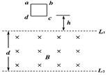 如图所示,相距为d的两条水平虚线L1、L2之间是方向水平向里的匀强磁场,磁感应强度为B,质量为m、电阻为R的正方形线圈abcd边长为L(L<d),将线圈在磁场上方高h处由静止释放,cd边刚进入磁场时速度为v0,cd边刚离开磁场时速度也为v0,则线圈穿越磁场的过程中(从cd边刚入磁场一直到ab边刚离开磁场) ( )![]()