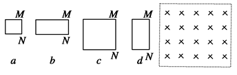 用相同导线绕制的边长为L或2L的四个闭合导体框,以相同的速度匀速进入右侧匀强磁场,如图所示。在每个线框进入磁场的过程中,M、N两点间的电压分别为Ua、Ub、Uc、Ud。下列判断正确的是:![]()