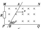 如图所示,MN、PQ为两条平行放置的金属导轨,左端接有定值电阻R,金属棒AB斜放在两导轨之间,与导轨接触良好,磁感应强度为B的匀强磁场垂直于导轨平面,设金属棒与两导轨接触点之间的距离为l,金属棒与导轨间夹角为60°,以速度v水平向右匀速运动,不计导轨和棒的电阻,则流过金属棒中的电流为( )![]()