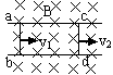在匀强磁场中有两条平行的金属导轨,磁场方向与导轨平面垂直,导轨上有两条可以沿导轨自由移动的导电棒ab、cd,这两根导电棒的速度分别为v1、v2,如图所示,ab棒上有感应电流通过,则不能有( )![]()