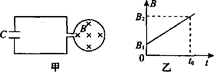 如图甲所示,电路的左侧是一个电容为C的电容器,电路的右侧是一个环形导体,环形导体所围的面积为S。在环形导体中有一垂直纸面向里的匀强磁场,磁感应强度的大小随时间变化的规律如图乙所示。则在0~t0时间内电容器 ( )![]()