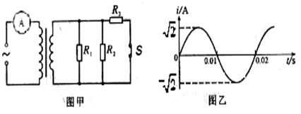 。开关S闭合。已知通过R1的正弦交流电如图乙所示,则:![]()