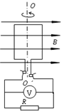 如图所示,在磁感应强度为B的匀强磁场中,有一匝数为N的矩形线圈,其面积为S,电阻为r,线圈两端外接一电阻为R的用电器和一个交流电压表。若线圈绕对称轴OOˊ以角速度ω做匀速转动,则线圈从图示位置转过90°的过程中,下列说法正确的是![]()
