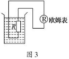 如图所示是观察电阻值随温度变化情况的示意图.现在把杯中![]()