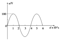 一正弦交流电的电压随时间变化的规律如图所示。由图可知( )![]()