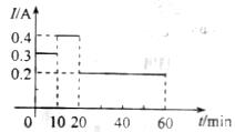 一台电风扇的额定电压为交流220V。在其正常工作过程中,用交流电流表测得某一段时间内的工作电流I随时间t的变化如图所示。这段时间内电风扇的用电量为![]()
