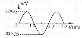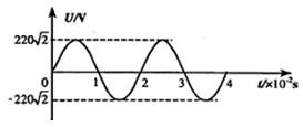 图是一正弦交变式电流的电压图象。则此正弦交变式电流的频率和电压的有效值分别为![]()