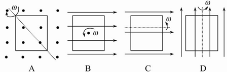 (2011·天津理综·T4)在匀强磁场中,一矩形金属线框绕与磁感线垂直的转轴匀速转动,如图1所示。产生的交变电动势的图象如图2所示,则![]()