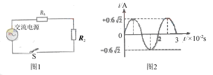 。合上开关后S后,通过电阻R2的正弦交变电流i随时间t变化的情况如图2所示。则![]()