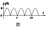 收录机等小型家用电器所用的稳压电源,是将220V的正弦交流电变为稳定的直流电的装置,其中的关键部分是整流电路。有一种整流电路可以将正弦交流电变成如图所示的脉动直流电(每半个周期都按正弦规律变化)。则该脉动直流电电流的有效值为 ( )![]()